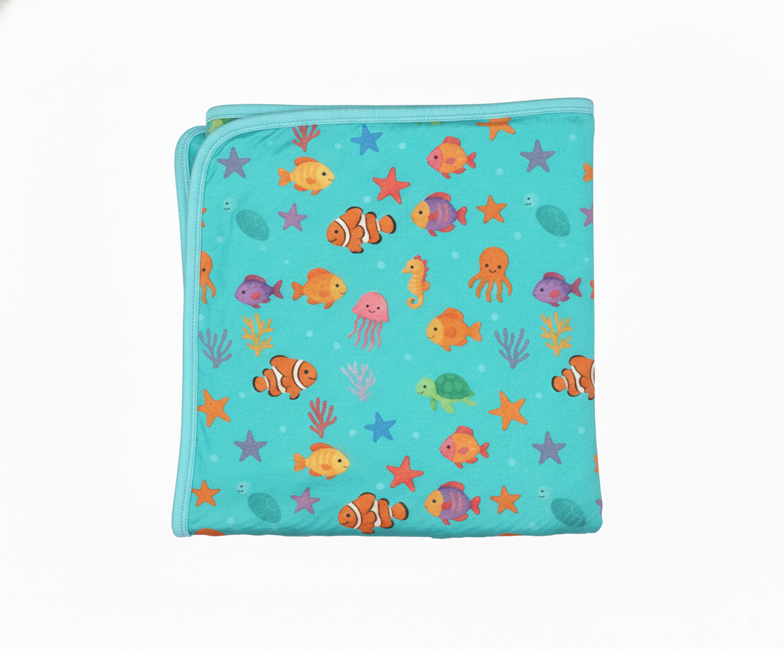 A Versatile Essential for Every Adventure The ultimate companion for your little one, offering a perfect blend of luxury and functionality. Whether it’s draped over a stroller, used as a cozy nursery accent, or bundled up for tummy time, this blanket provides a comforting weight and a silky-smooth touch that babies love. We made sure that this blanket size would last so it measures 50 inches by 50 inches!
